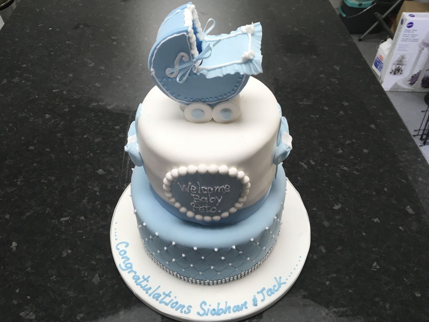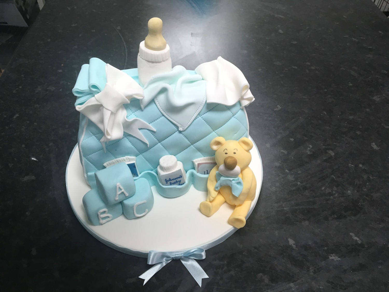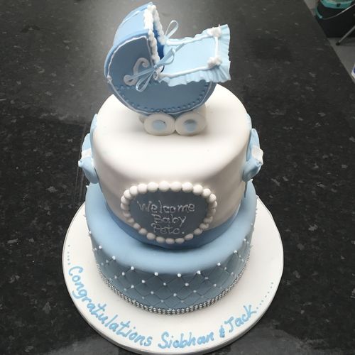 To celebrate the imminent arrival we can design a cake fit for a little prince or princess. The sponge can be coloured pink or blue if you wish to do a gender reveal.